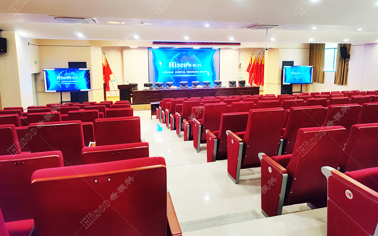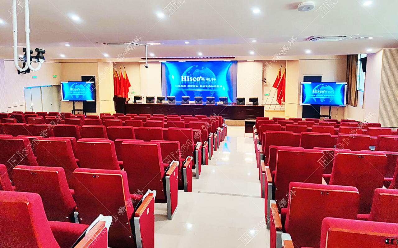 本校报告厅是一个中大型报告厅,主要为举办学校学术会议、演讲、公共大课培训及各种文艺演出,根据其建筑结构特点和使用功能及国家相关标准,根据面积和观看距离选择合适的LED大屏,展现整个舞台的宏伟大气;扩声采用集中与扩散相结合的扩声方式,开会和报告时采用单声道集中扩声还原模式,所有音源都从主席台发出,声像的平衡、方位无倾斜,保证了下面学生听到的直达声响度和均匀度达到要求,让学生听的适宜和舒服。演出时采用左右立体声空间成像模式,直达声与辅助音箱的效果声相结合表演,传达表演意境,使得演员和观众之间产生一种无声的交流。