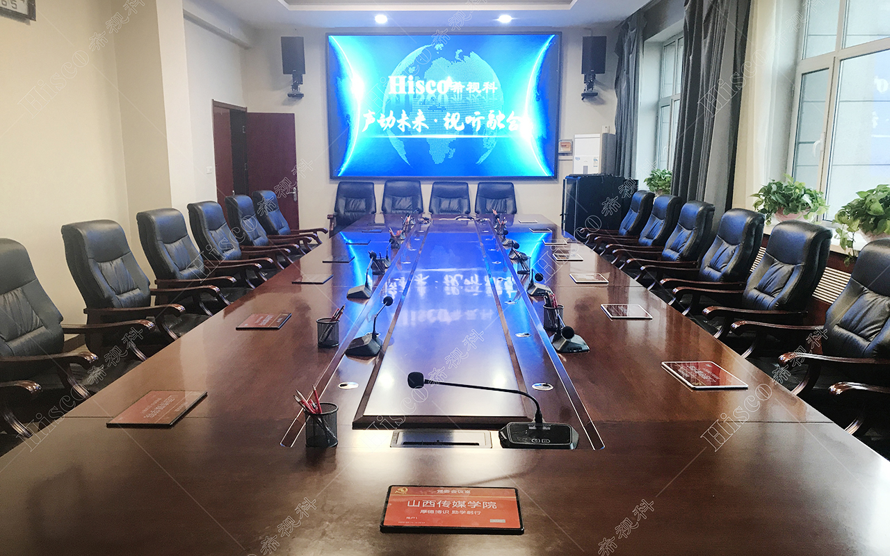 山西传媒学院位于山西省太原市,是中华人民共和国国家广播电视总局和山西省人民政府共建高校,是中国第三大传媒本科院校,中国培养广播影视及其他传媒专门人才的主要基地之一。本次项目为教育行业会议室会议系统建设,主要设计了数字会议系统、扩声系统、显示系统、集中控制系统、矩阵系统等。